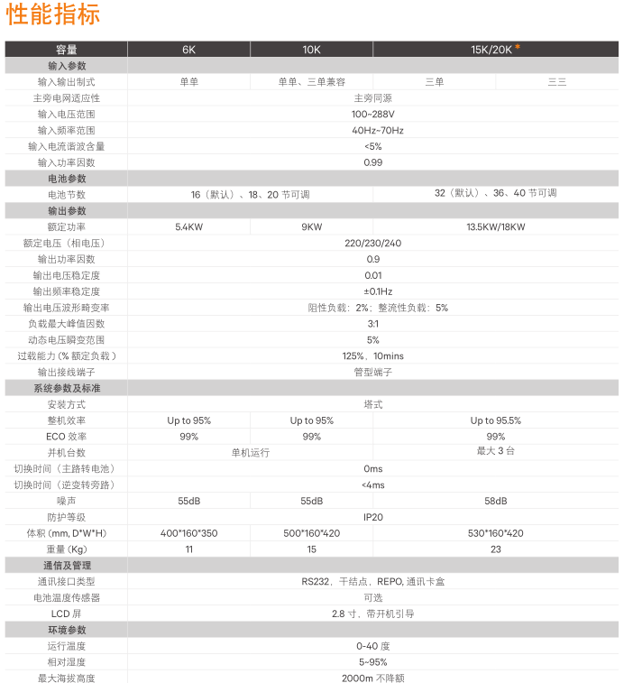 整機(jī)效率可達(dá)95.5%,較上一代UPS能耗降低40%以上。以10KVA/9KW負(fù)載為例,